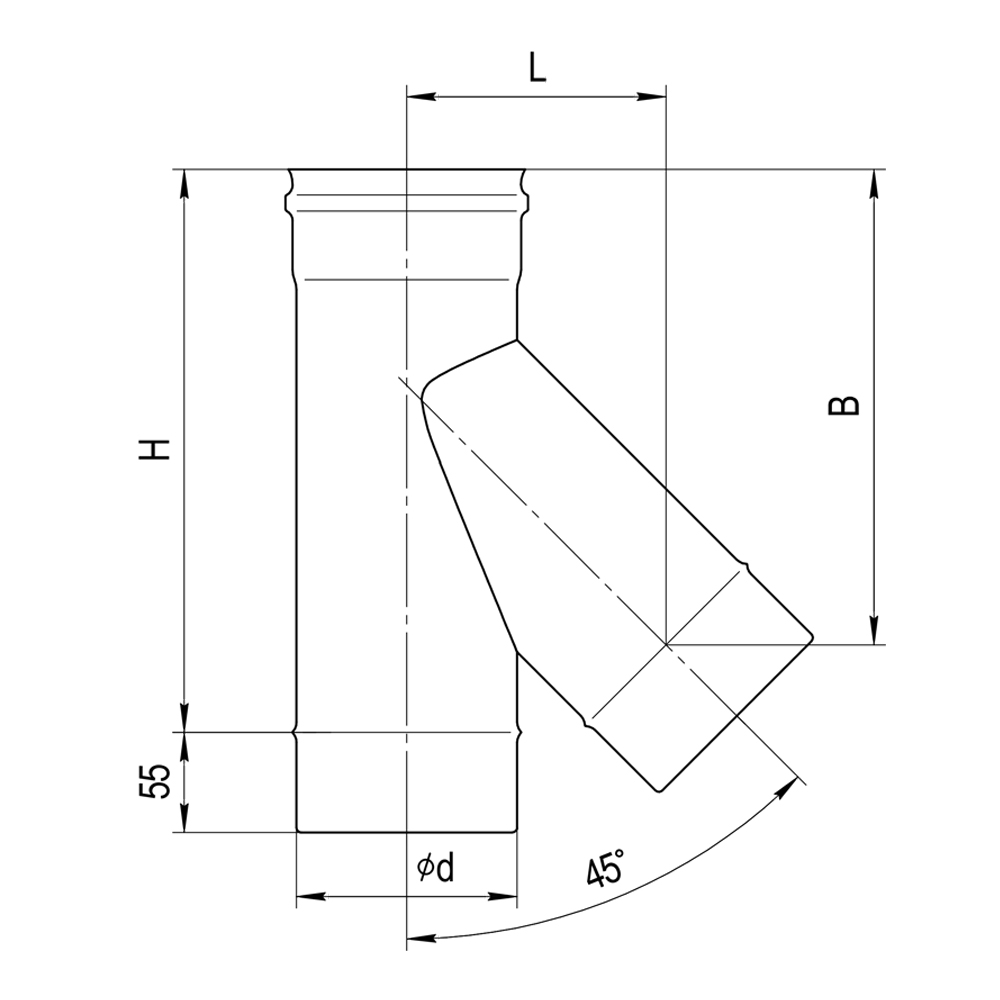 Предназначен для изменения направления дымового канала на угол 45°, используется в качестве очистного элемента, облегчает обслуживание дымохода.