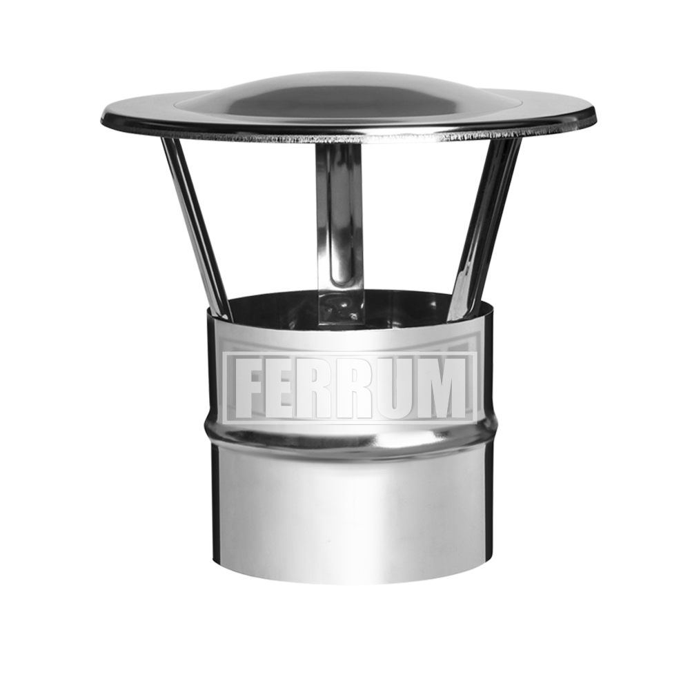 Зонт-К Ferrum из нержавеющей стали является завершающим элементом дымового канала, используется для предохранения одностенного дымохода от атмосферных осадков.