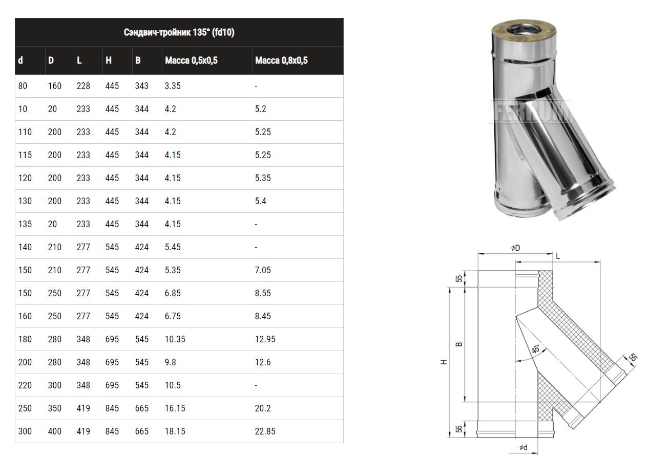 Сэндвич-тройник Ferrum 135° из нержавеющей стали - предназначен для изменения направления дымового канала, используется в местах присоединения теплогенерирующего аппарата к основному каналу. Выполняет функцию очистного приспособления, облегчает обслуживание дымохода.