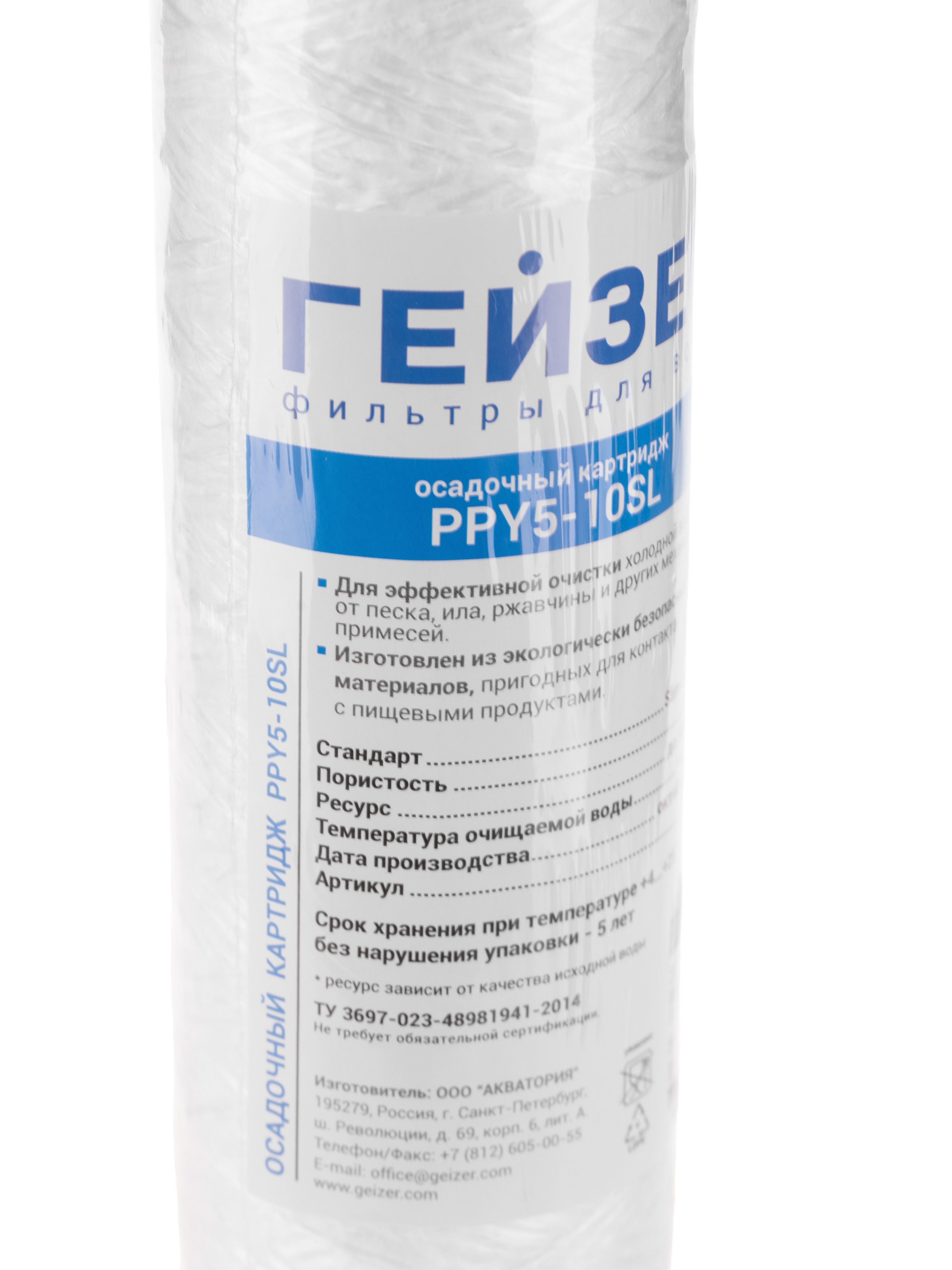Картридж PPY 5 - 10SL предназначен для очистки воды от нерастворимых примесей (более 5 мкм).