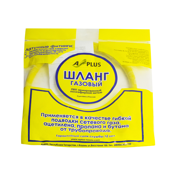 Шланг газовый ПВХ 1/2. г/ш 2,5 м A-PLUS