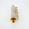 Латунный никелированный коллектор на 2, 3 или 4 выхода диаметром 3/4" с наружной резьбой, стандарт присоединения – «евроконус». Диаметр коллектора – 1", резьба – внутренняя/наружная. Рабочая температура теплоносителя – до 130 °С, давление – до 16 бар. Применяется для распределения потоков жидкостей в контурах теплого пола, радиаторного отопления, холодного и горячего водоснабжения.