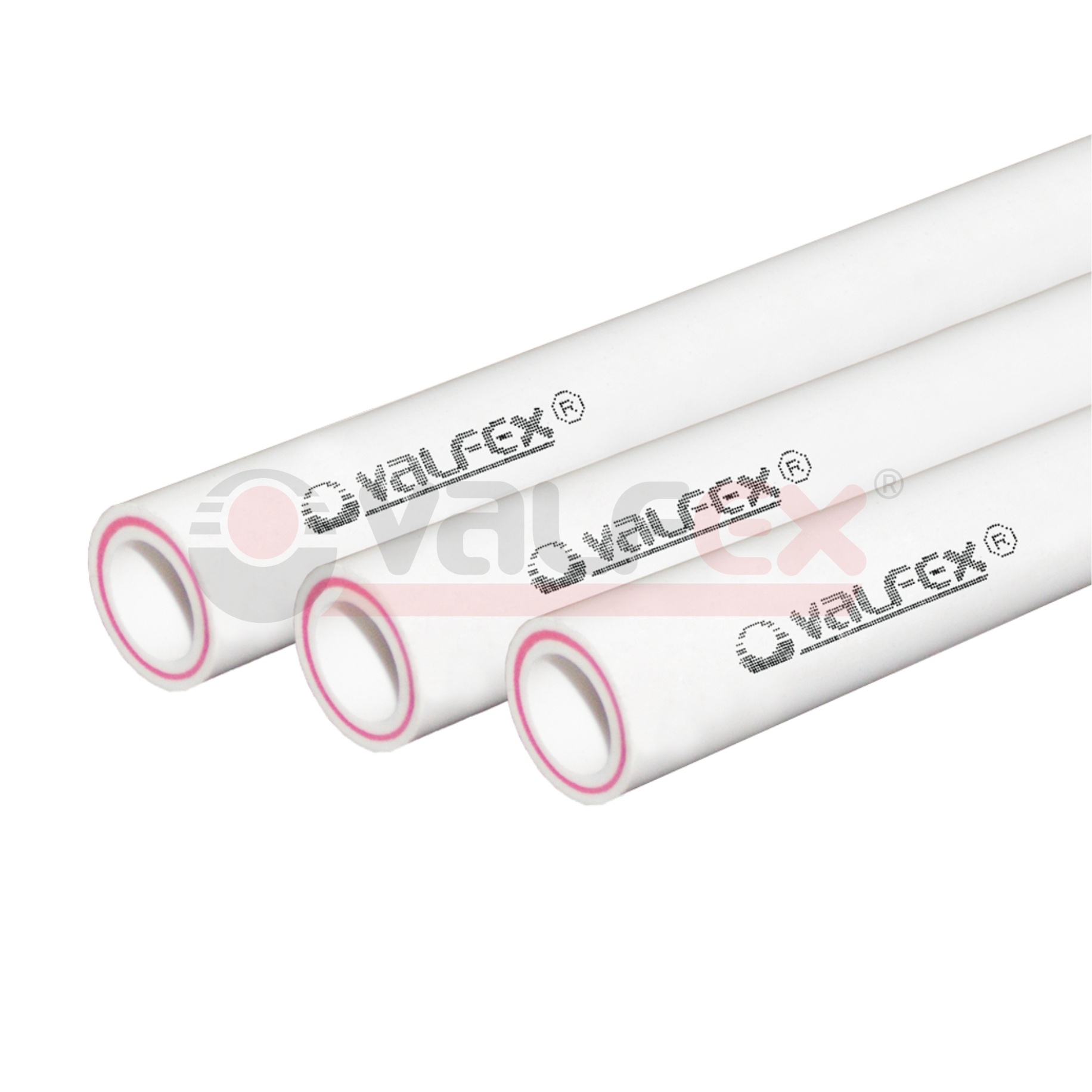 Трубы кольцевого сечения из статистического сополимера полипропилена PP-R трехслойные стеклонаполненные (средний слой армирован стекловолокном) (PP-R/PP-R GF/ PP-R) ТМ VALFEX® предназначены для транспортирования воды с температурой до 70°С для хозяйственно-питьевого водоснабжения, низкотемпературного отопления, высокотемпературного отопления отопительными приборами с температурой 90°С, а также для транспортирования других жидких сред, к которым материал труб химически стоек.