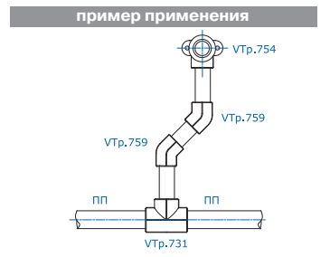 Двухсторонний угловой полипропиленовый фитинг (отвод), позволяющий изменить направление полипропиленового трубопровода на 45°. Монтаж осуществляется методом раструбной сварки.
