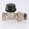 (VT.038.N) Прямой радиаторный термостатический клапан VT.038 предназначен для автоматического или ручного регулирования расхода теплоносителя через отопительный прибор водяной системы отопления с рабочей температурой до 110 °С и рабочим давлением до 1,0 МПа включительно. Клапан соответствует требованиям стандарта EN 215, часть 1 и ГОСТ 30815. Отличительной особенностью радиаторного клапана VT.038 является наличие в его конструкции втулки предварительной настройки (Kv = 0,1–0,6), которая позволяет производить гидравлическую балансировку приборов в двухтрубных системах водяного отопления. Таким образом клапан объединяет в себе функции термостатического регулирования и монтажной настройки, что позволяет отказаться от использования дополнительной настроечной арматуры (как правило, на выходе из отопительного прибора в двухтрубной системе устанавливается специальный настроечный клапан для гидравлической балансировки в ходе пусконаладочных работ).