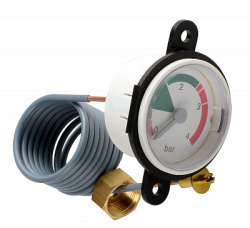 Манометр D.40 -T&G ВAXI 9951650 информируют пользователя о текущем давлении в системе отопления и котле. Этот прибор располагается на корпусе котла в лицевой его части. Состоит из пластикового корпуса со шкалой, крепежа к корпусу, подводящей трубки и штуцера с прокладкой.
