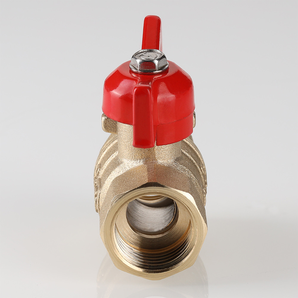 Полнопроходной ремонтопригодный шаровой кран стандартного ресурса. Выполнен из из латуни марки ЛЦ40Сд (ГОСТ 17711-93). Кран оснащен ручкой типа «бабочка», изготовленной из силумина марки АК7 (ГОСТ 1583-93) с покрытием эпоксиполиэфирной порошковой композицией красного цвета. Резьба присоединений – внутренняя/внутренняя.